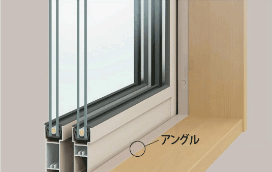 アングルとはサッシの室内側にあり、アングル有りの場合は