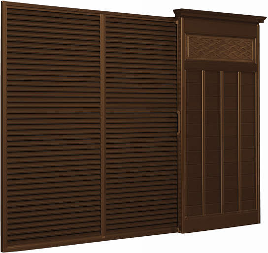 雨戸の場合には、戸袋の室外側にあり飾り板の役割や戸板を 戸袋に収めた際の戸板を風雨から守る役割も果たしております。 |