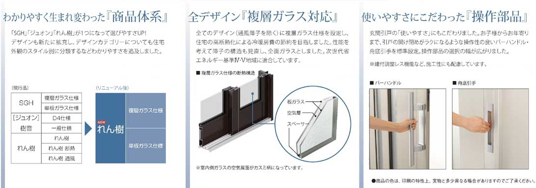 玄関引戸「れん樹」が新しく生まれ変わりました。 【下記の商品イメージ画像をクリックすると拡大します。】